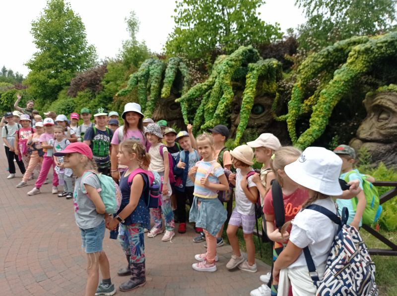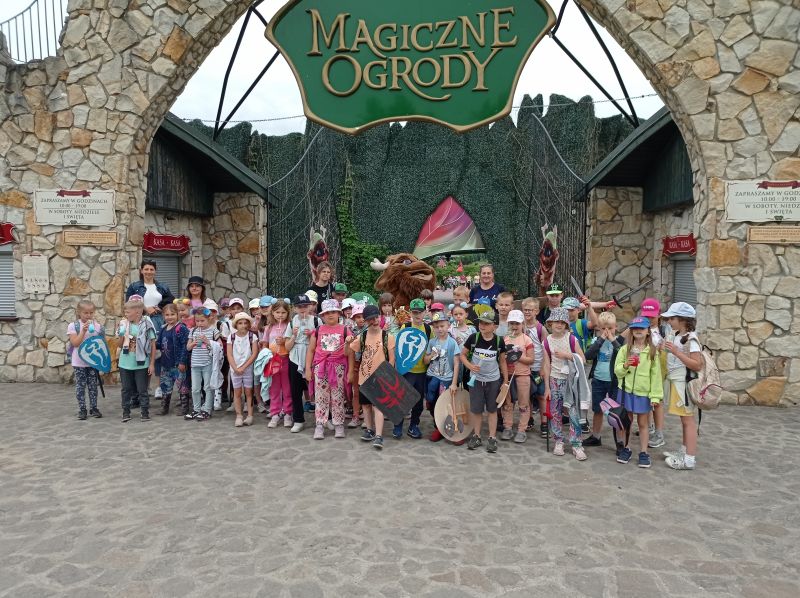 Miłym akcentem na koniec roku szkolnego była całodniowa wycieczka dydaktyczno - rozrywkowa, która odbyła się 16 czerwca 2023 r. Wzięli w niej udział uczniowie naszej szkoły z klas pierwszych. Celem wycieczki było odwiedzenie „Magicznych Ogrodów”. Jest to wielki park rozrywki zwany sensorycznym, to znaczy, że działa na wszystkie zmysły. Piękna przyroda tutaj zachwyca i porusza. Świetną zabawę przeplatają bajeczne historie i spotkania ze skrzatami, dzielnymi wojowniczkami, mruczącymi drzewami i innymi baśniowymi stworami. Dzieci znalazły tam mnóstwo atrakcji w postaci zjeżdżalni, karuzel, ogromnego toru przeszkód, wspinaczki po sznurkowych piramidach, zdobywania średniowiecznych twierdz, zawodów sprawnościowych, czy przejażdżki kolejką. Ta wycieczka długo pozostanie w pamięci dzieci, jako miłe wspomnienie i być może kiedyś znów się tam wybierzemy.