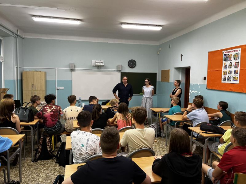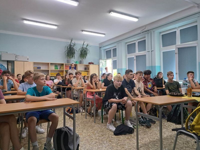 Pan Grzegorz Kasdepke przyjechał do klas 8 w ramach nagrody za II miejsce w Konkursie Ogólnopolskim "Ocalimy Świat". Spotkanie przebiegło w miłej i sympatycznej atmosferze, pełnej humoru. Autor podpisał również książki, które uczniowie otrzymali jako nagrody.