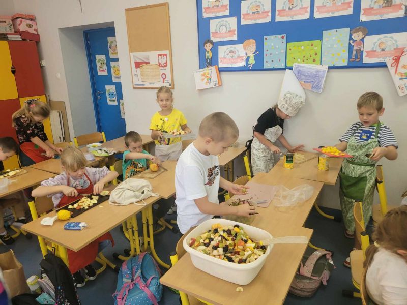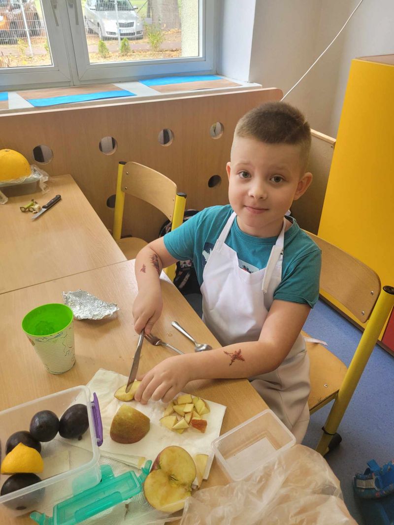 5 października 2023 był pysznym, owocowym dniem w klasie Ia. O owocach uczniowie wiedzą bardzo dużo. Każdy wie, jak ważne jest jedzenie owoców – nie tylko dlatego, że są smaczne, ale przede wszystkim – zawierają mnóstwo witamin, które chronią i wzmacniają nasz organizm. Dlatego też dzieci postanowiły zrobić pyszną i zdrową sałatkę owocową..