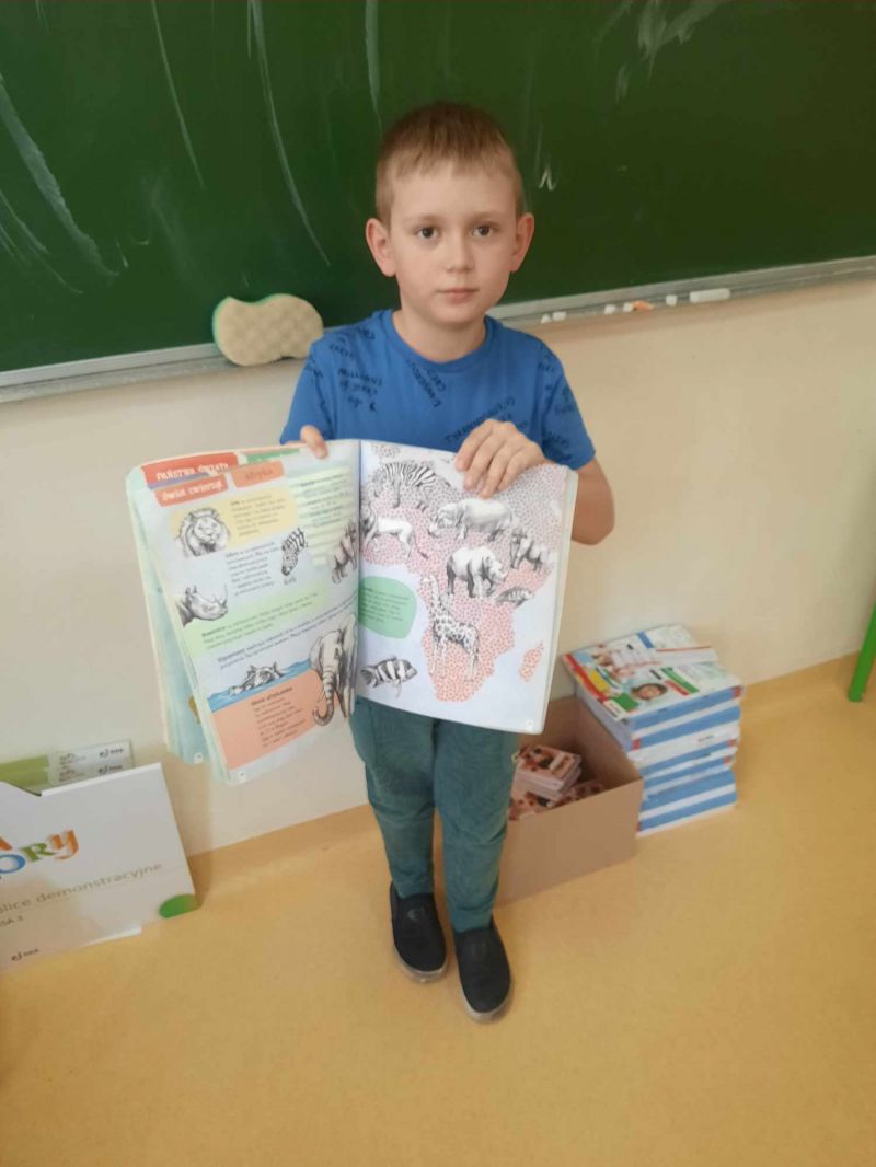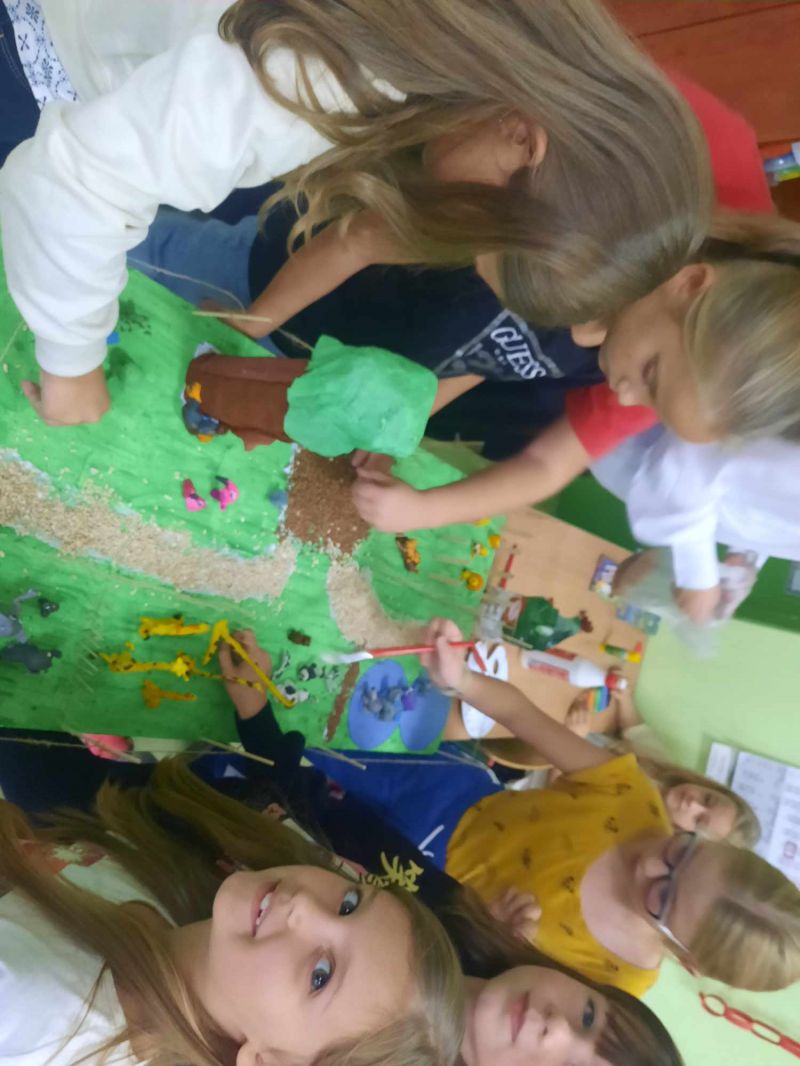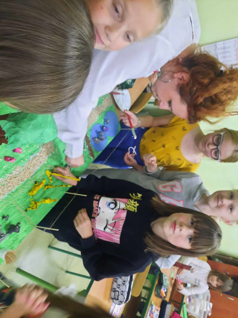 Klasa 2a w ramach podsumowania zajęć o zwierzętach mieszkających w Afryce prezentowała ciekawostki nt zwierząt oraz z wielkim zaangażowaniem wykonała makietę Zoo.