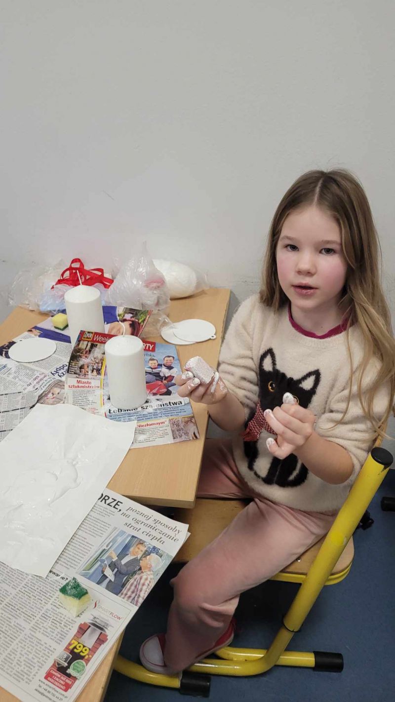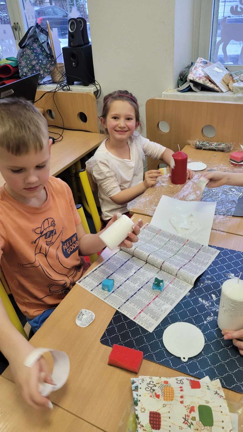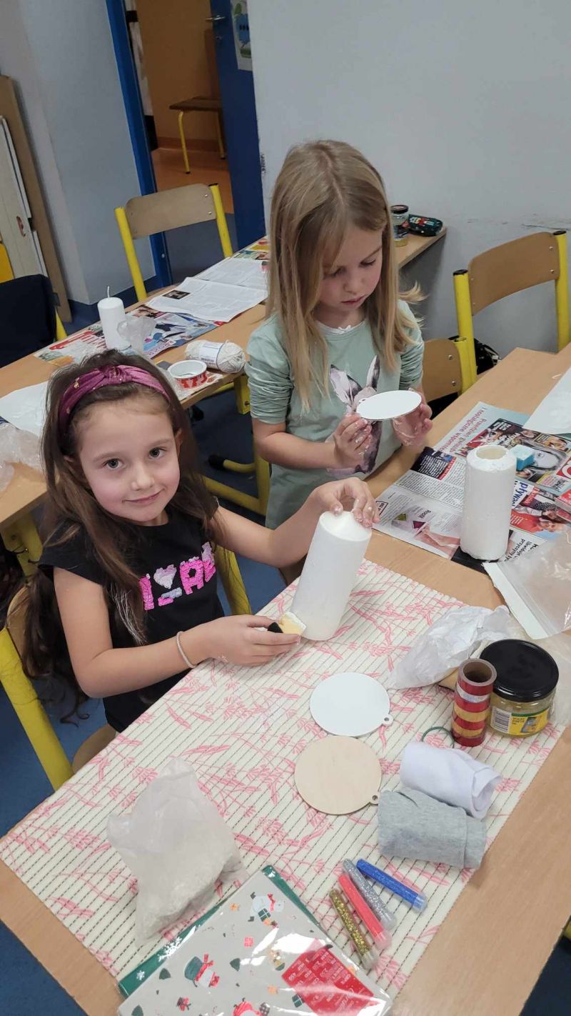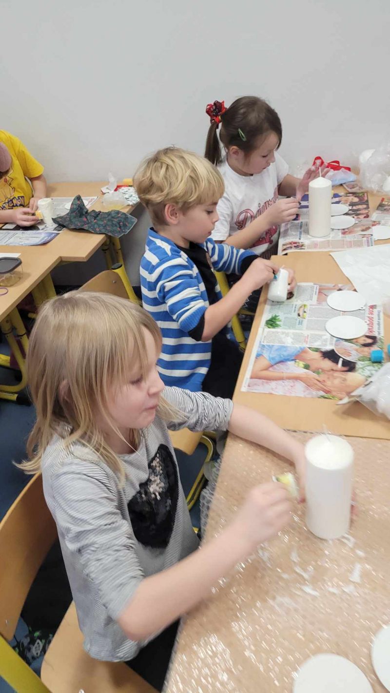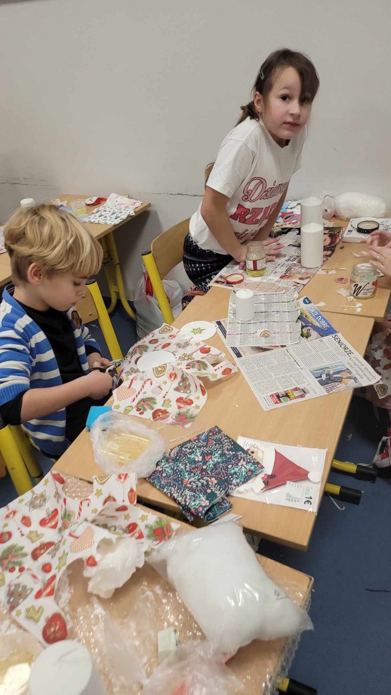 W piątkowe popołudnie klasa 1a aktywnie pracowała podczas warsztatów bożonarodzeniowych. Wykonaliśmy prace w technice decoupage oraz skrzaty z którymi dzieci nie chciały się rostac. Bardzo dziękujemy mamie Jasia i Juli za pomoc podczas warszatów..